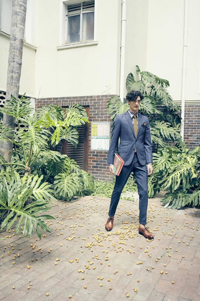 Junger Mann geht auf einer Straße im Maßanzug von Lewin